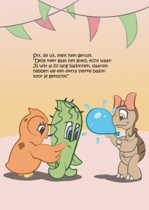 Maar ja, cactussen en ballonnen gaan niet goed samen… Het is maar goed dat Spike zulke lieve vriendjes heeft die hem helpen om zijn droom waar te maken.